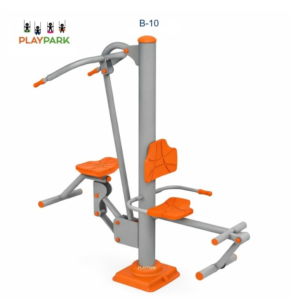 Aparatul Fitness dublu „Presa piept + Extensia picioarelor” B-10 este destinat antrenamentului simultan a două persoane. Întărește mușchii brațelor, picioarelor, spatelui și umerilor, dezvoltând forța și rezistența. Structură metalică solidă cu elemente antivandal. Ideal pentru parcuri, școli și zone de fitness.