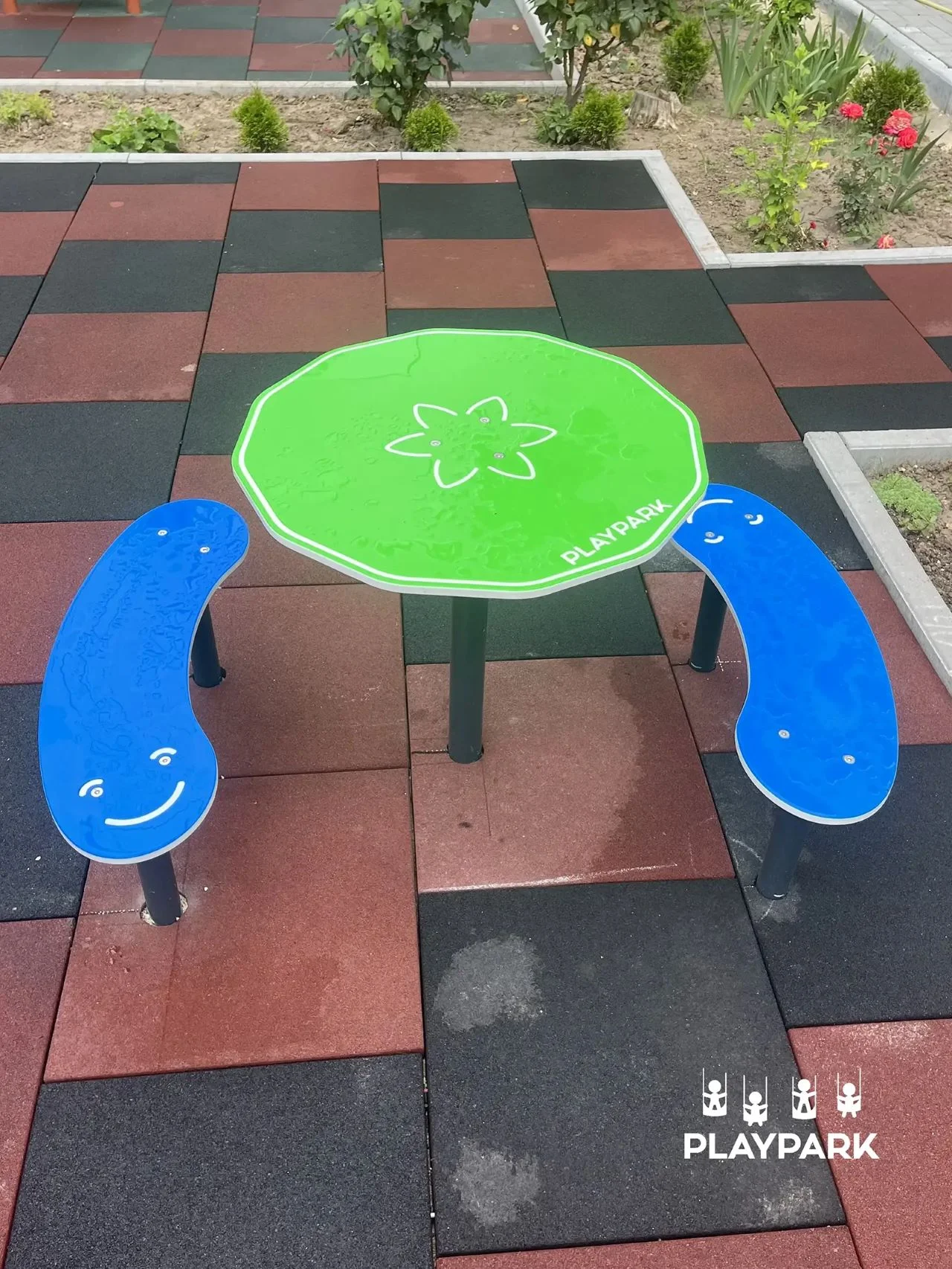 Masuța de joaca cu banca curba F-4 - este un element al echipamentului pentru orice spații de joacă. Copiii vor putea juca diverse jocuri educative la locul de joacă sau în parc. Banca acționează ca zonă de relaxare.