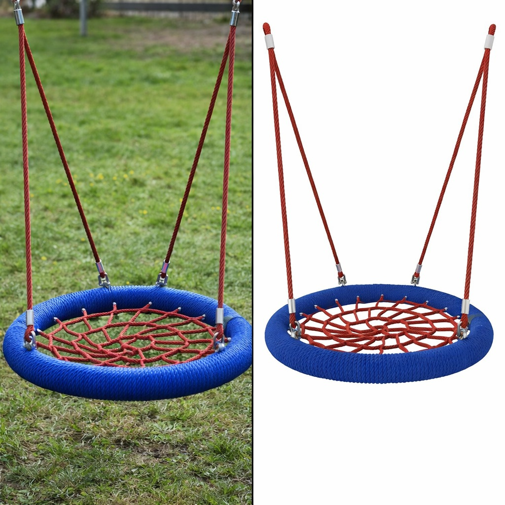 Leagănul suspendat tip „Cuib” Cb-01 este o soluție modernă cu ramă ranforsată, destinat terenurilor de joacă, curților, parcurilor și spațiilor private. Construcția este realizată sub forma unui inel metalic rezistent cu plasă împletită, asigurând confort și siguranță pentru mai mulți copii simultan. Șezutul larg distribuie uniform greutatea și este potrivit pentru copii de diferite vârste.