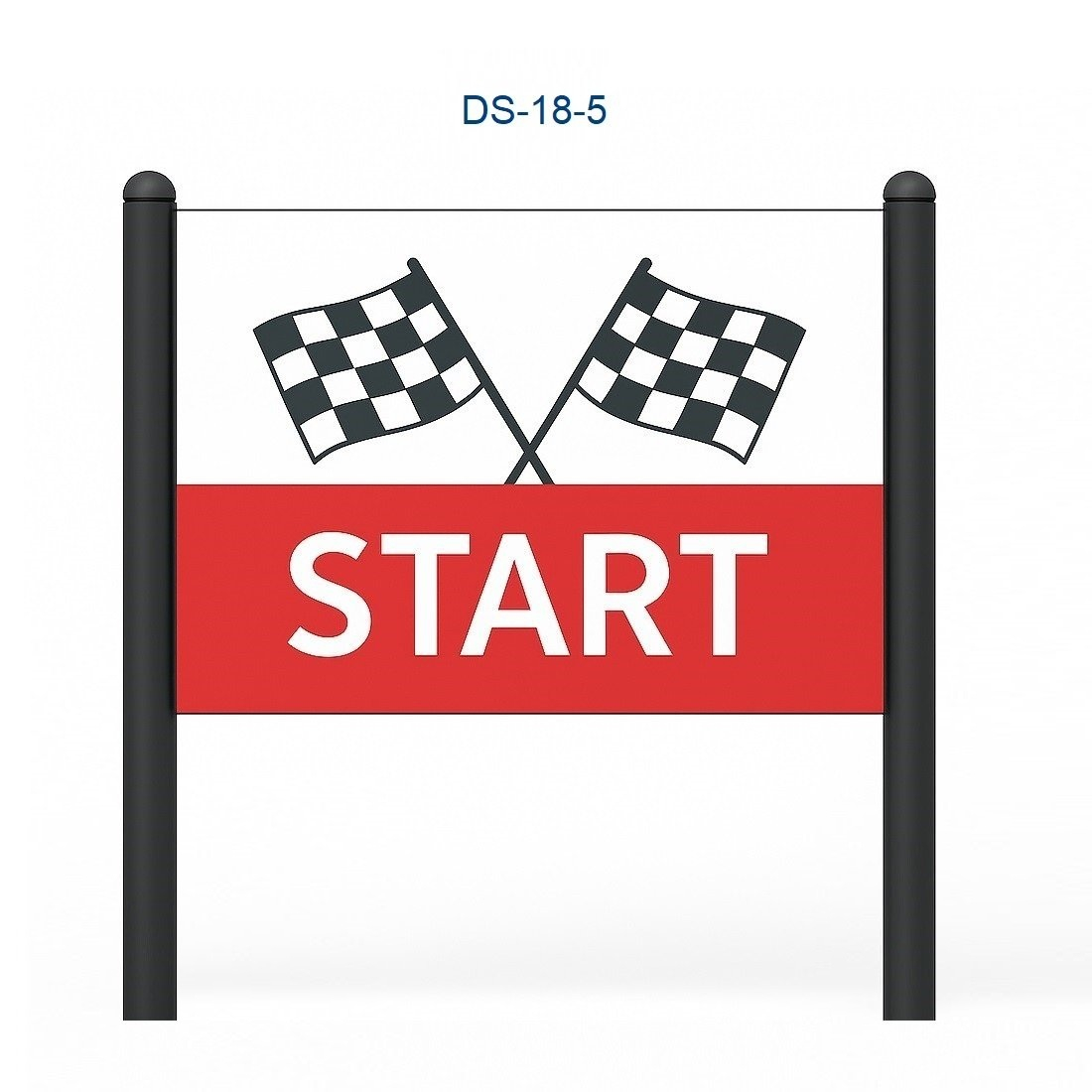 Un element special al colecției este panoul „START” în stil Formula-1, perfect pentru marcarea zonei de pornire a unei piste de curse. Acesta creează o atmosferă competitivă și plină de energie, completând armonios designul tematic al locului de joacă „Campion”.