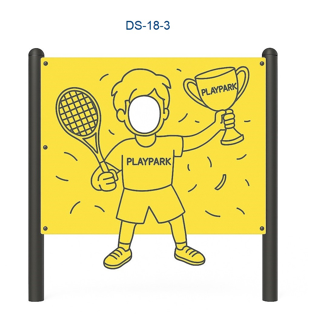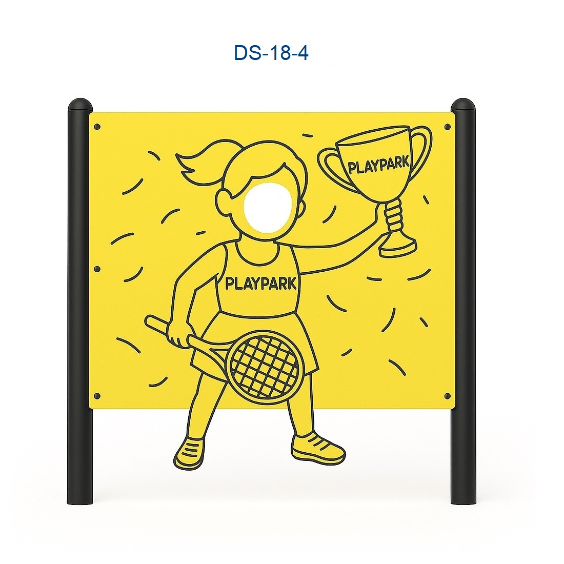 Fiecare panou are o tematică sportivă (tenis, fotbal, curse auto Formula-1),  și include o decupare pentru față, transformând jocul într-o experiență foto distractivă și memorabilă.